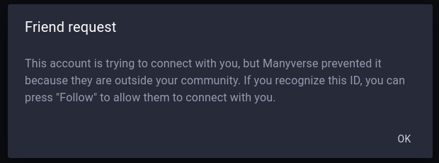 Just throwing this out there: the first obstacle I ran into was that I was able to connect Tilde Friends to Manyverse, but it would immediately disconnect. Digging through the Activities tab in Manyverse, I eventually found this:
